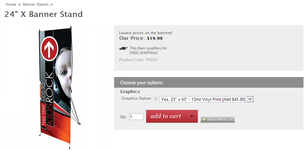 Go to any of our banner stand product page. Select “Yes” to the graphics option, add to cart, and proceed to checkout.